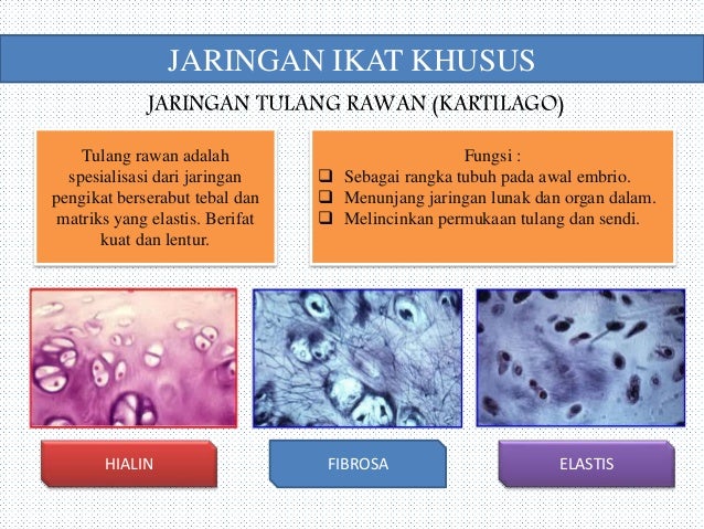 Jaringan ikat penyokong adalah jaringan ikat yang berperan dalam membentuk dan menyokong tubuh Jaringan ini terdiri dari tulang rawan dan tulang keras Jaringan tulang rawan Tersusun oleh sel kondrosit Terdapat 3 macam jaringan rawan yaitu hialin elastin dan fibrosa Jaringan tulang keras Tersusun oleh sel osteosit Dan terdiri dari